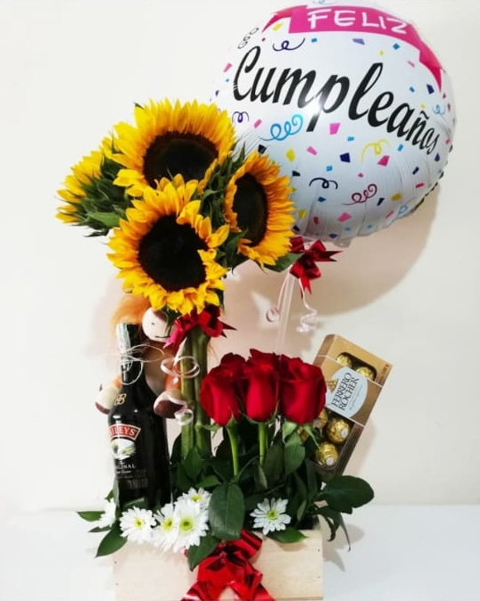 Arreglo Floral “Rosas, Girasoles y Chocolates”
